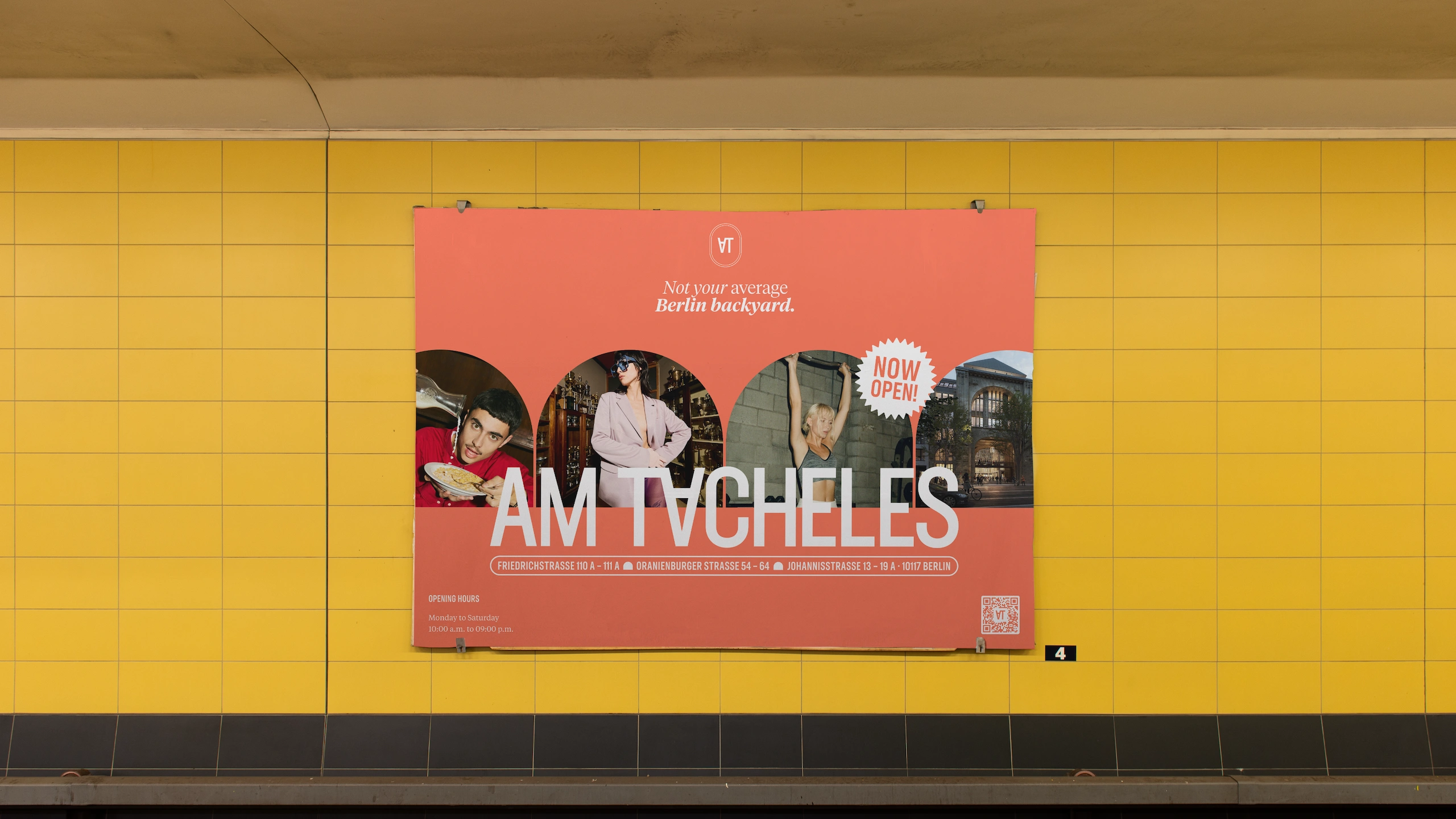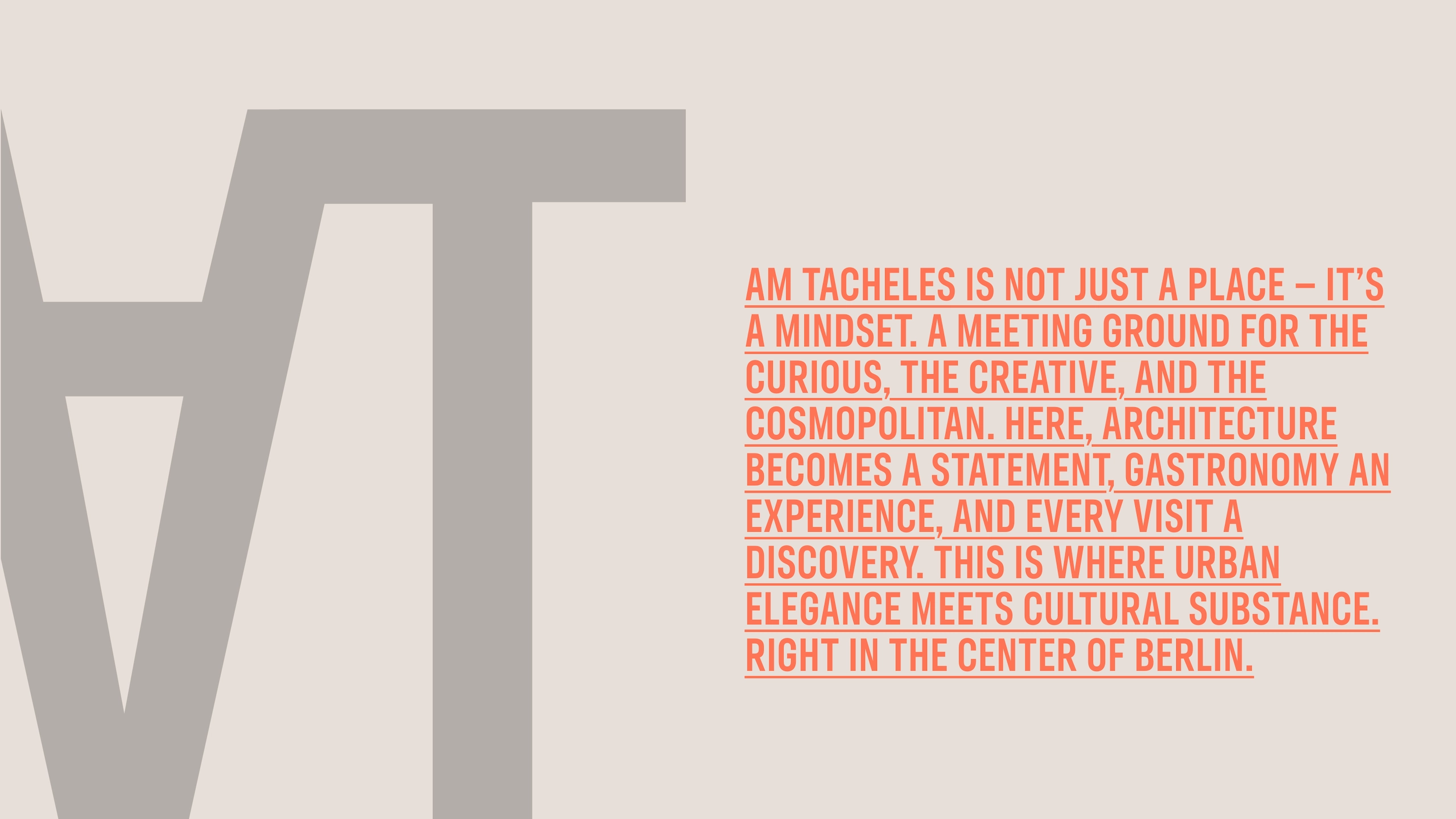 AM TACHELES is a remix: of culture and lifestyle, of heritage and experimentation, of substance, style, and the courage to rethink what’s possible. This comes to life in a vibrant visual language and in a claim that embodies understated confidence: Not your average Berlin backyard.